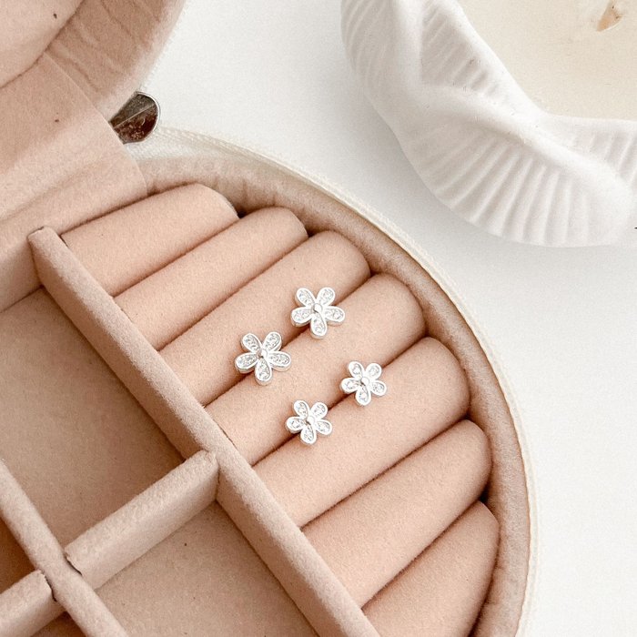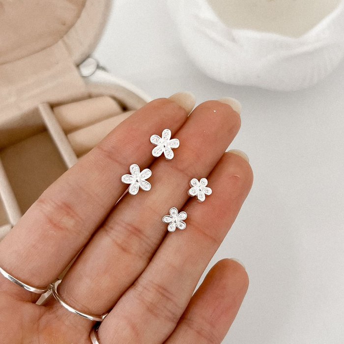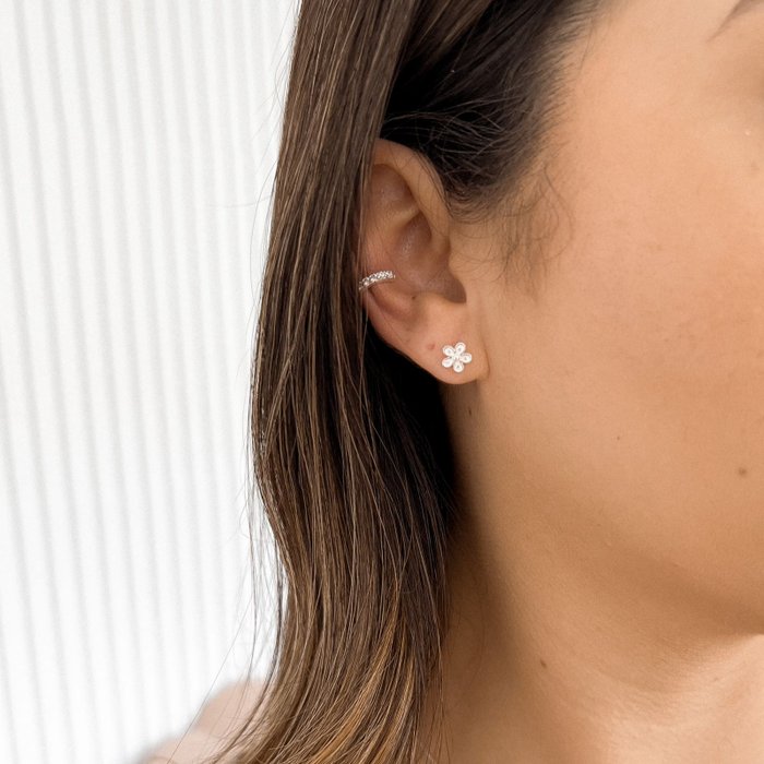 Sobre a joia: Brinco em Prata 925 em formato de flor delicada, cravejada com zircônias que garantem brilho e sofisticação. Uma joia atemporal e romântica, ideal para quem ama acessórios femininos e cheios de charme. Seu design floral traz leveza e combina com qualquer ocasião – desde o dia a dia até eventos especiais.