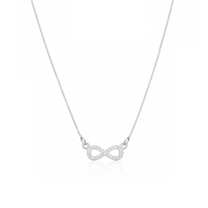 Com um pingente em formato de infinito cravejado com zircônias, ele simboliza amor eterno, conexão e momentos que não têm fim ✨ Ideal para usar no dia a dia ou presentear alguém especial.