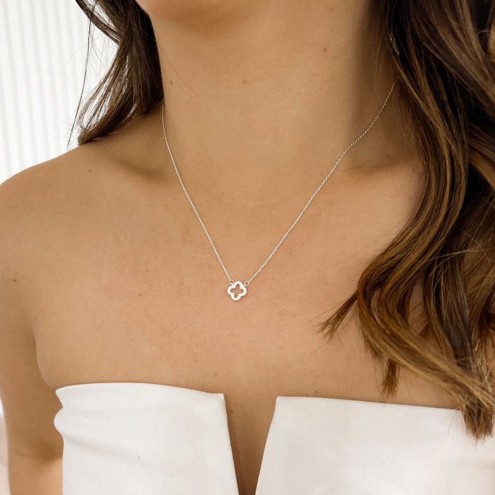 Sobre a joia: Colar em Prata 925 com pingente de trevo cravejado em zircônias. Um símbolo de sorte e boas energias, transformado em uma joia delicada e sofisticada. O design minimalista do trevo, aliado ao brilho sutil das zircônias, faz desse colar uma peça versátil para usar todos os dias ou presentear alguém especial.