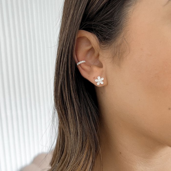 Kit Colar + Brinco em Prata 925 com design floral cravejado em zircônias. Um conjunto romântico e sofisticado que transmite frescor, feminilidade e delicadeza. O colar com flores em cascata valoriza o colo com brilho sutil, enquanto o brinco floral complementa o look com charme e harmonia. Perfeito para presentear ou para compor produções elegantes e atemporais.
