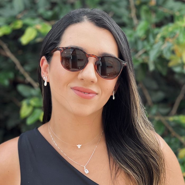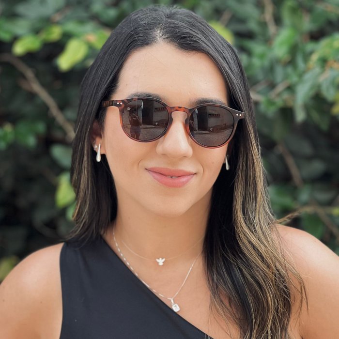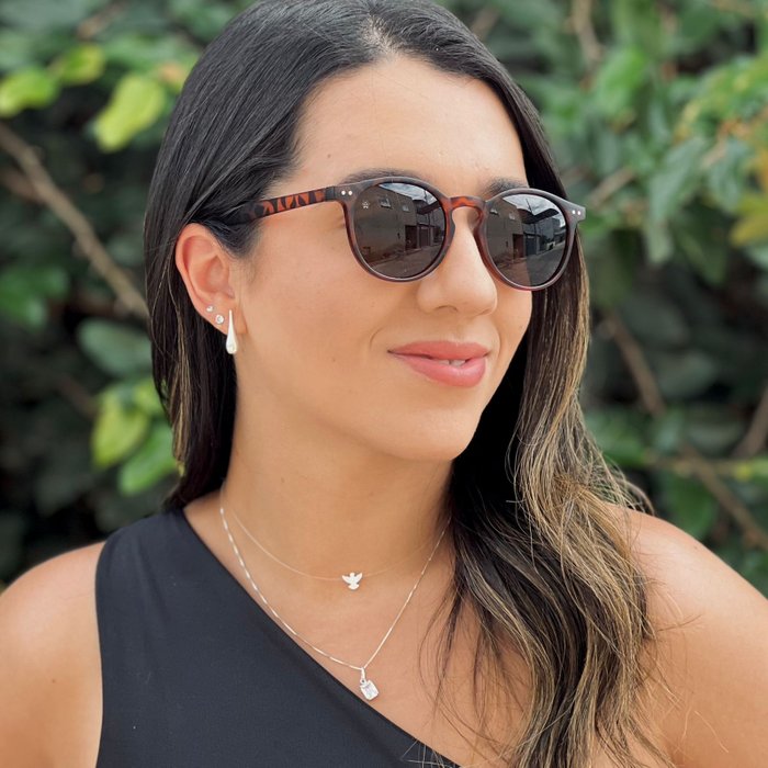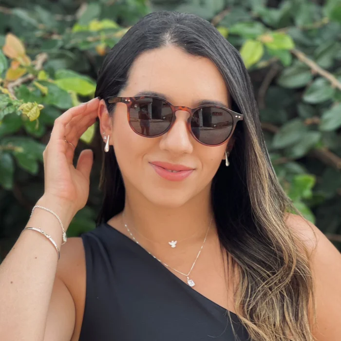 A armação em tartaruga traz charme e atemporalidade, enquanto as lentes em tom marrom proporcionam um visual mais natural e confortável para o dia a dia.