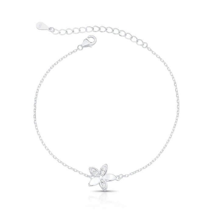 Sobre a joia: Pulseira em Prata 925 com pingente de flor cravejada em zircônias. Uma joia delicada e romântica que traz frescor e brilho na medida certa. O design minimalista e elegante da flor central faz dessa pulseira um acessório versátil, perfeito para compor combinações femininas e sofisticadas no dia a dia ou em ocasiões especiais.